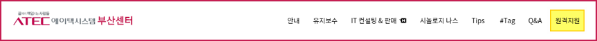 에이텍시스템 부산센터, 블로그 상단의 원격지원을 클릭하셨습니다. 아래의 그림처럼 진행해 주세요.